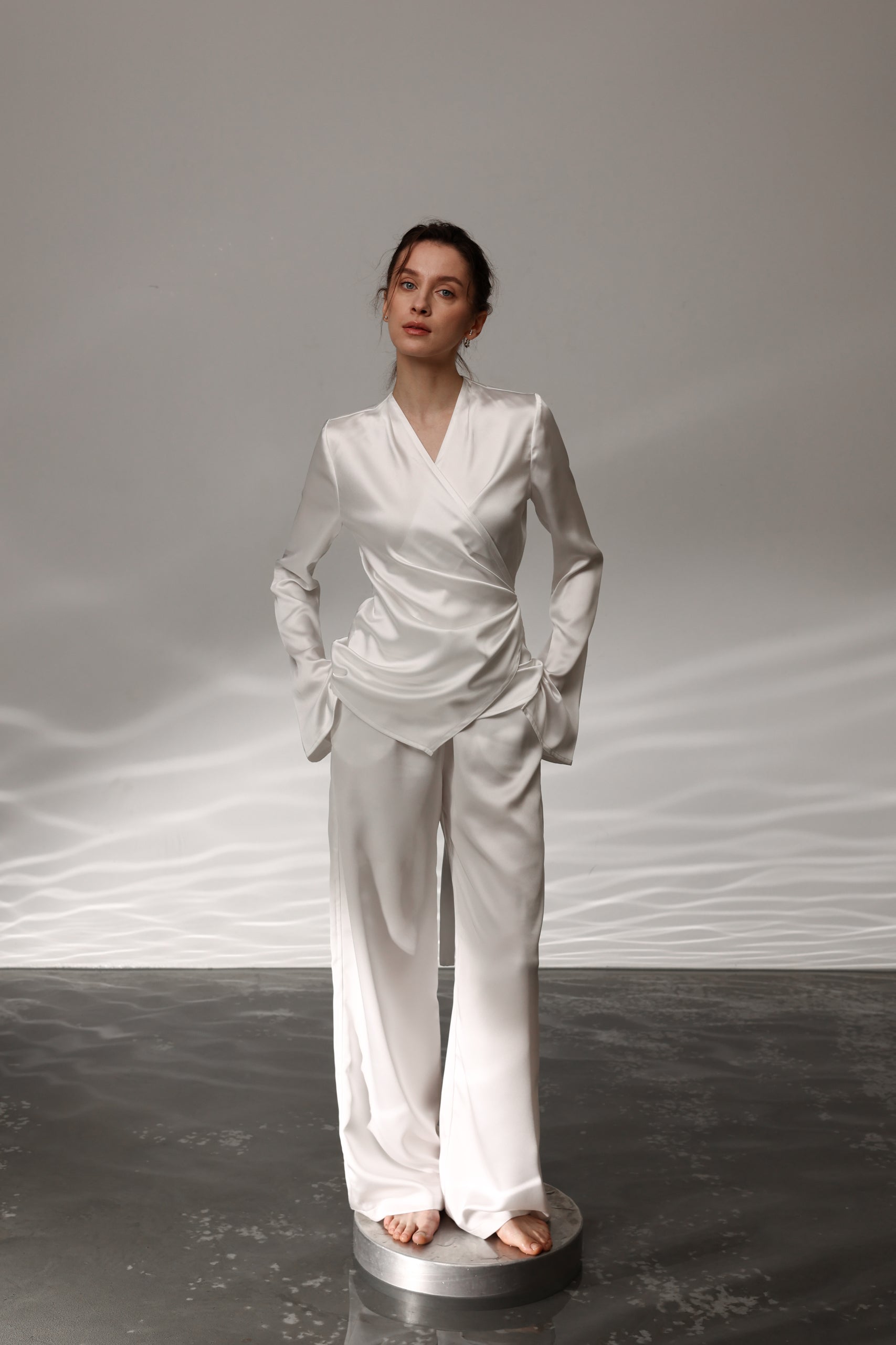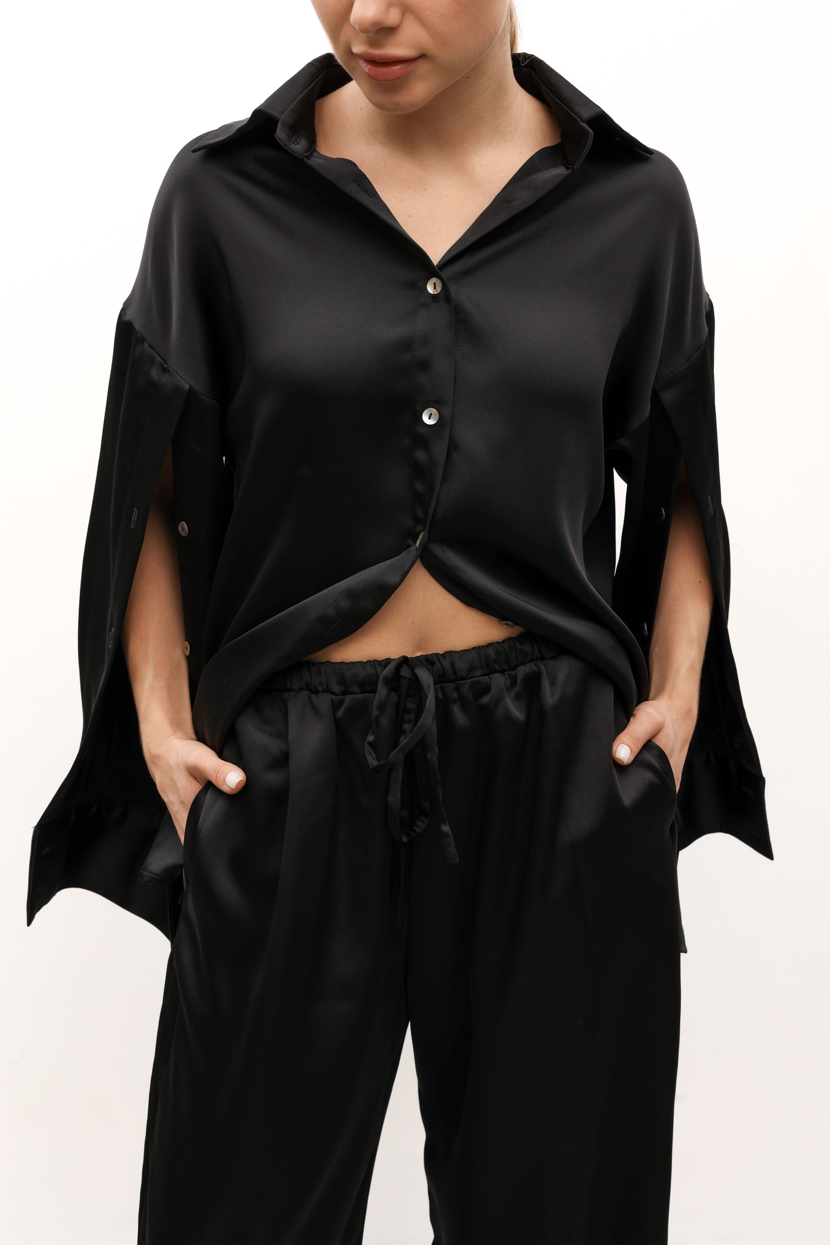 Атласні штани вільного крою з кишенями