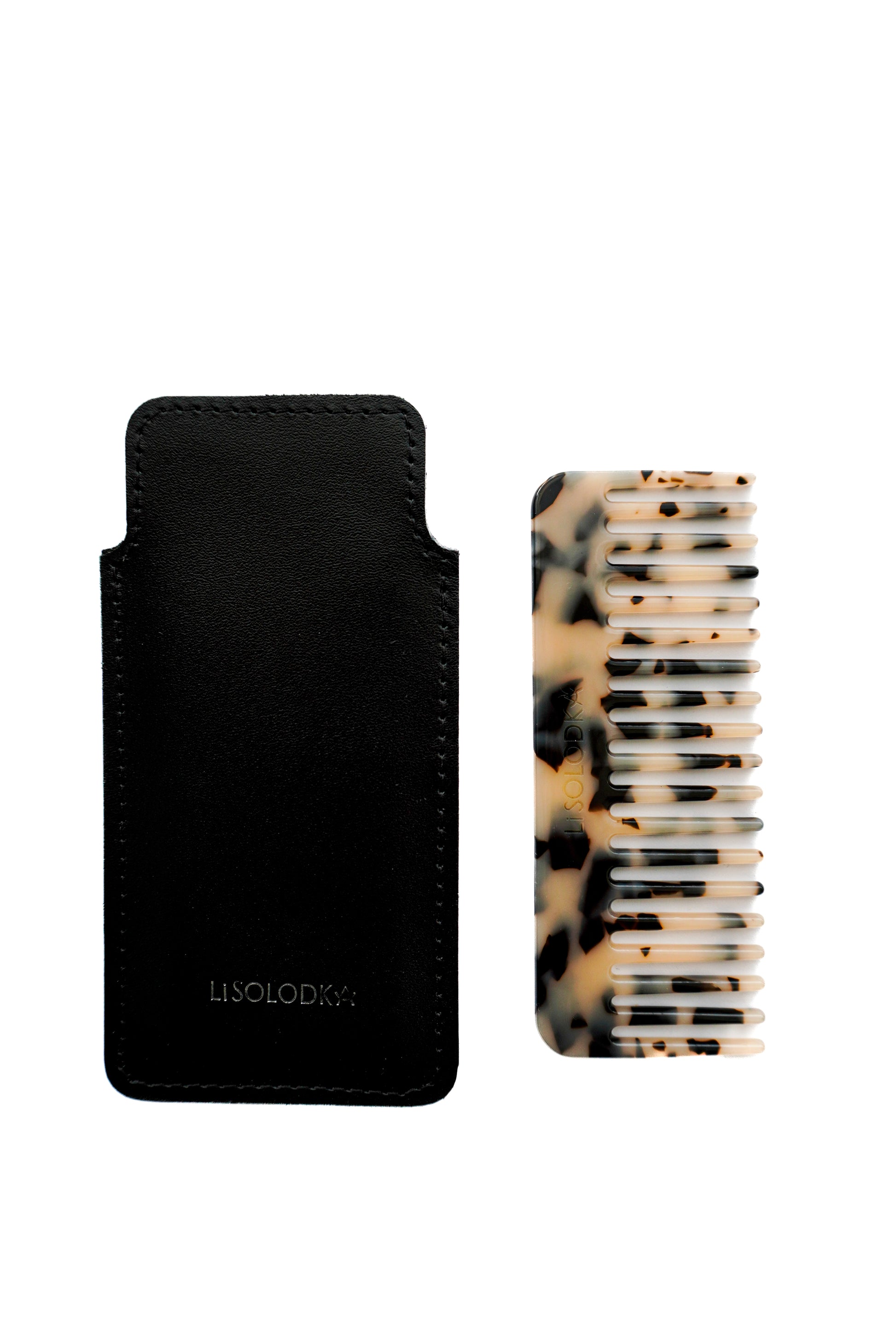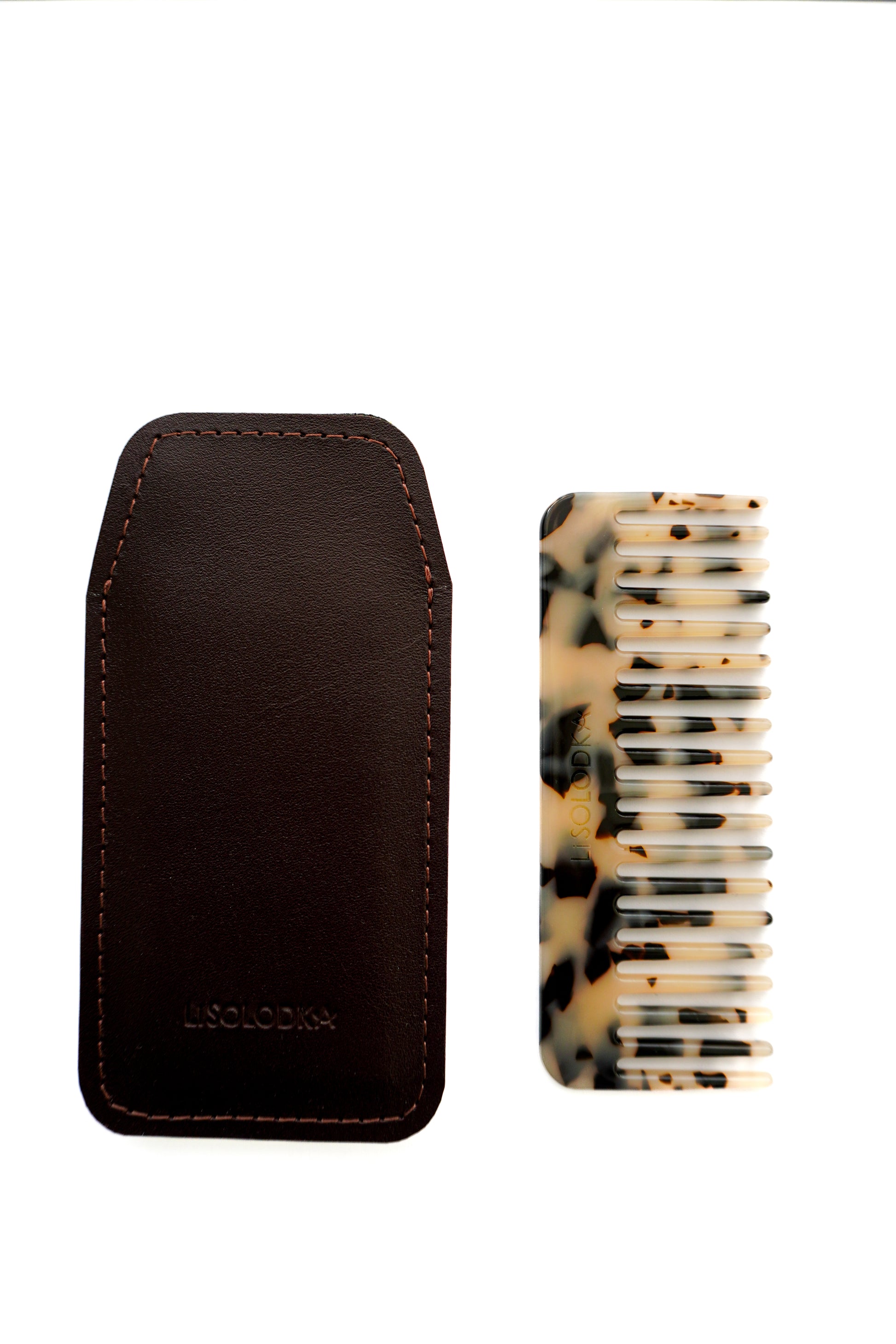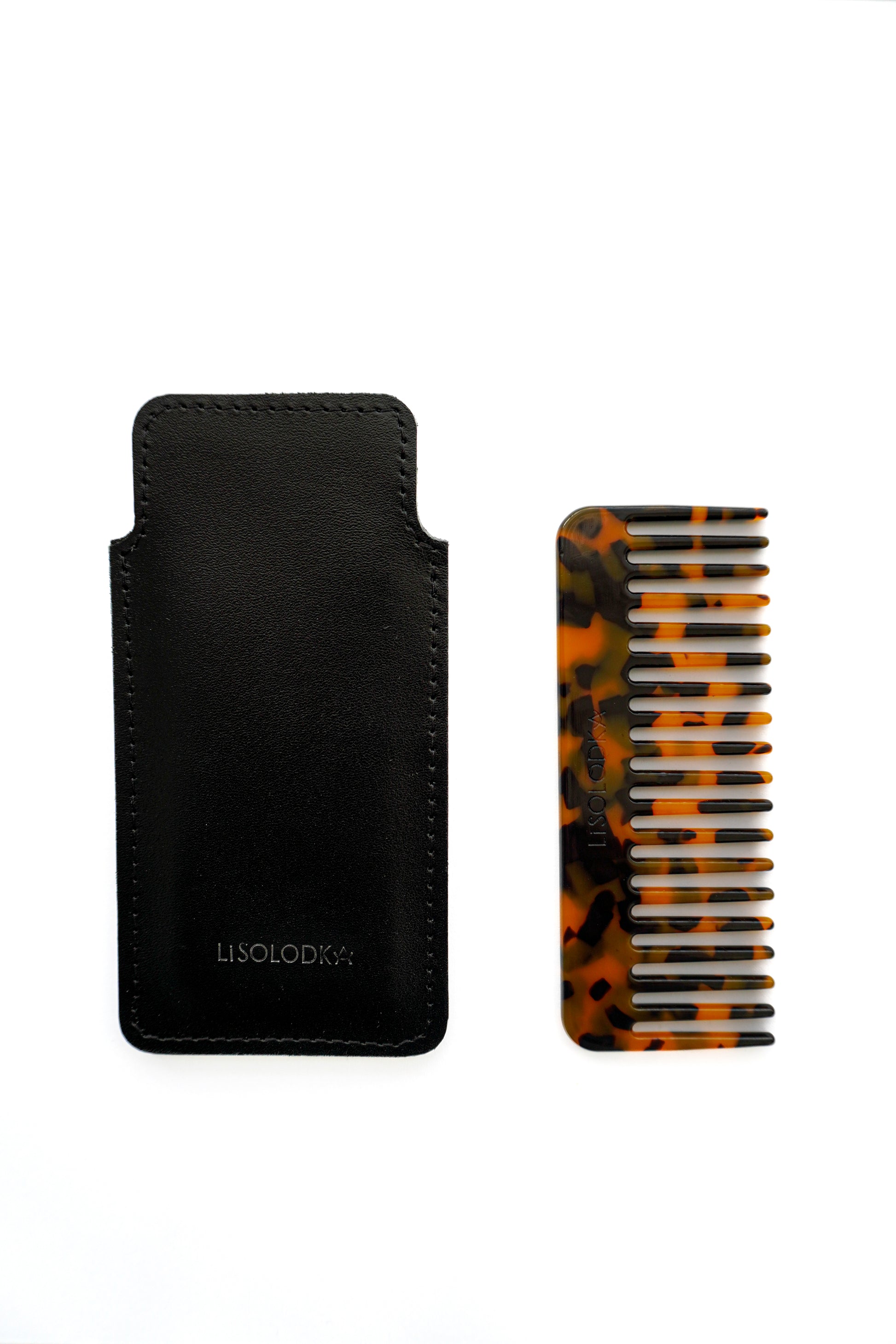 Гребінець з лого LiSOLODKA в шкіряному чохлі
