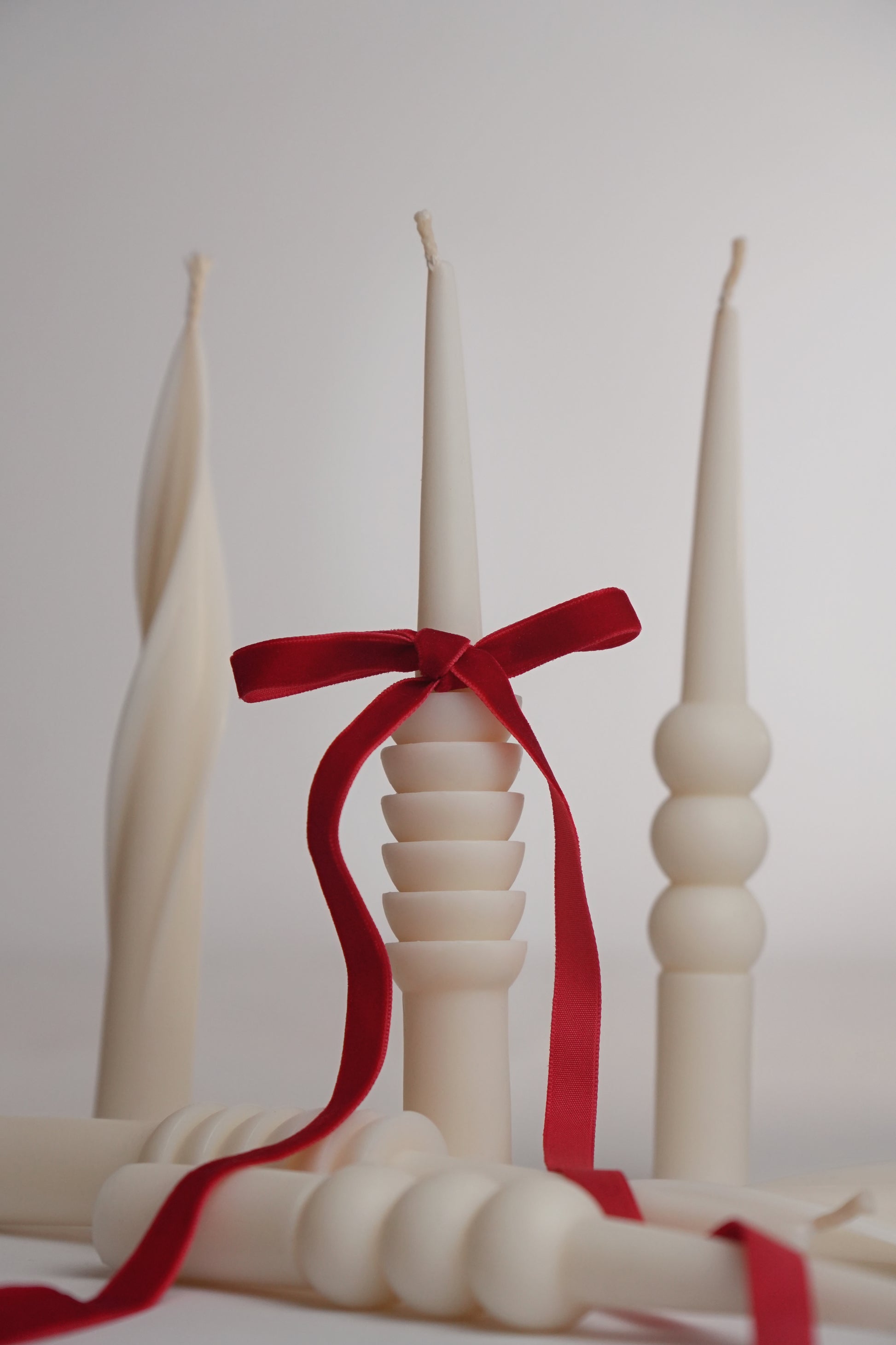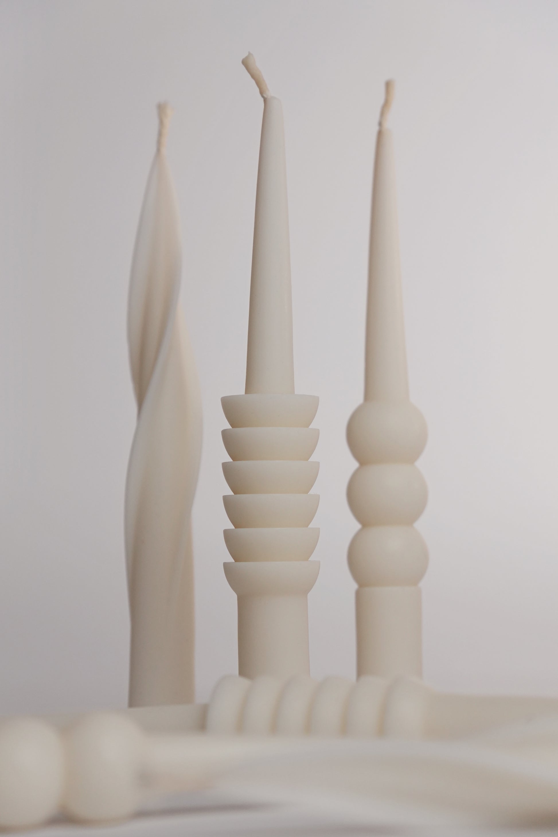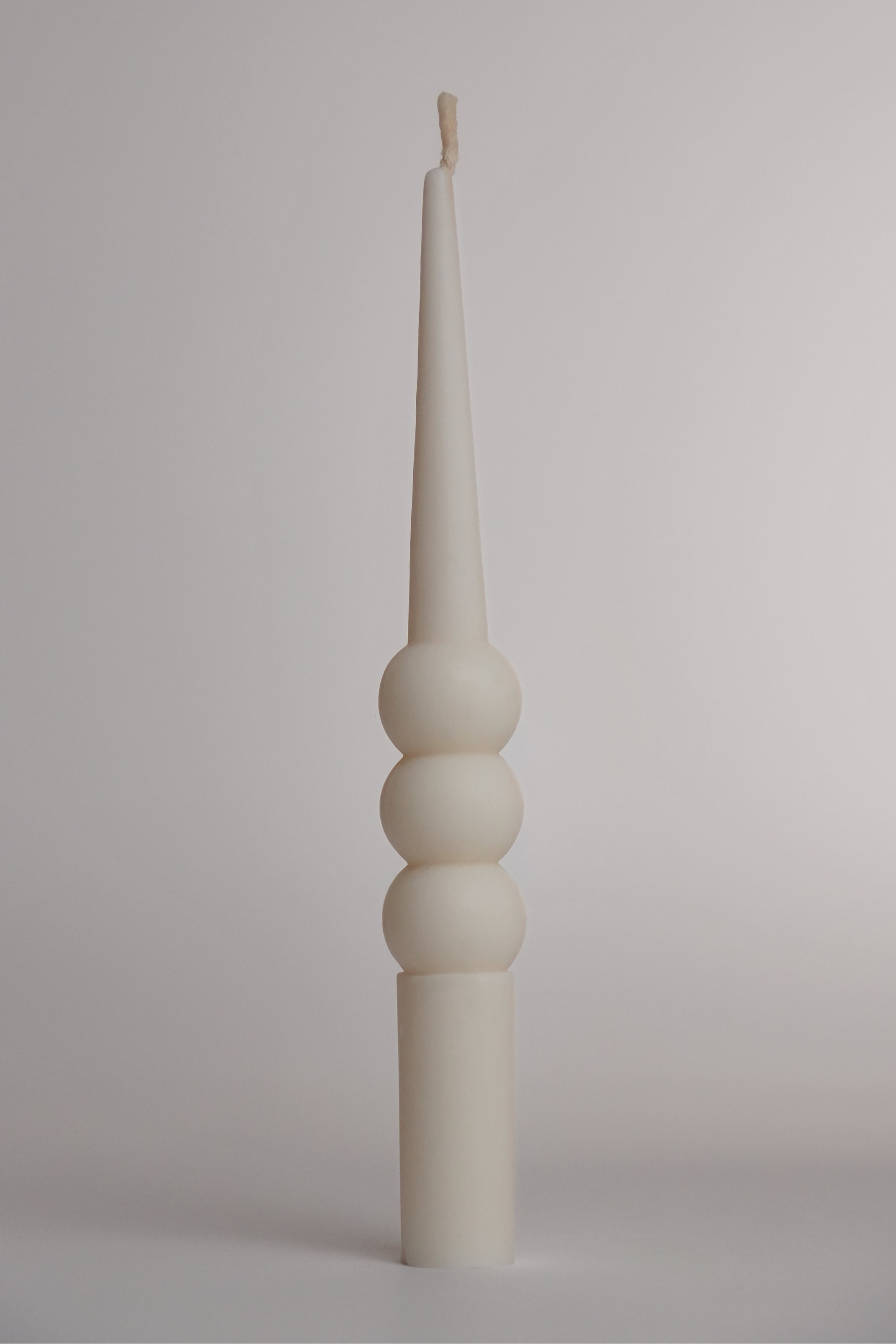 Декоративна свічка зі скульптурною формою у відтінку айворі.