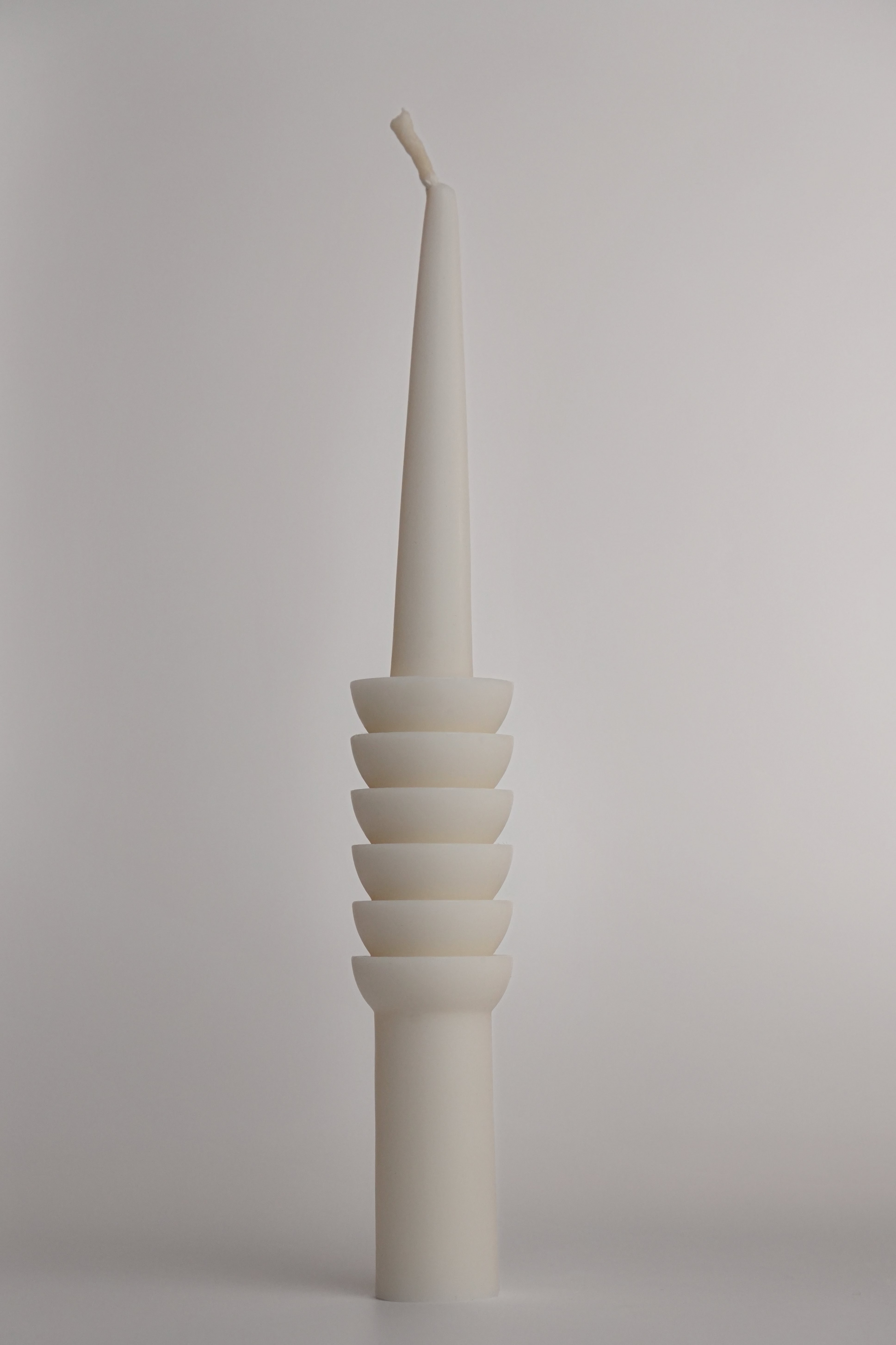 Декоративна свічка зі скульптурною формою у відтінку айворі.