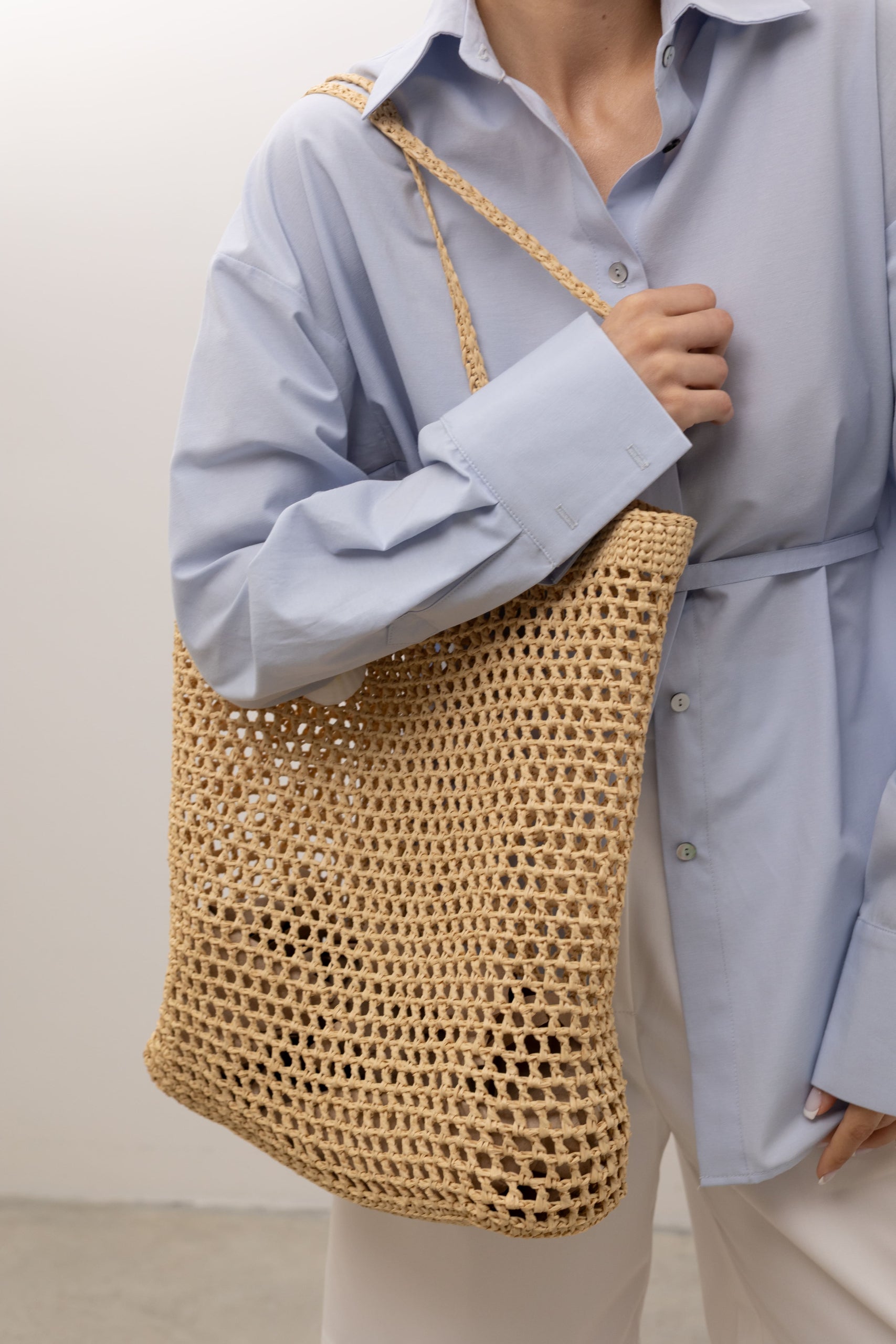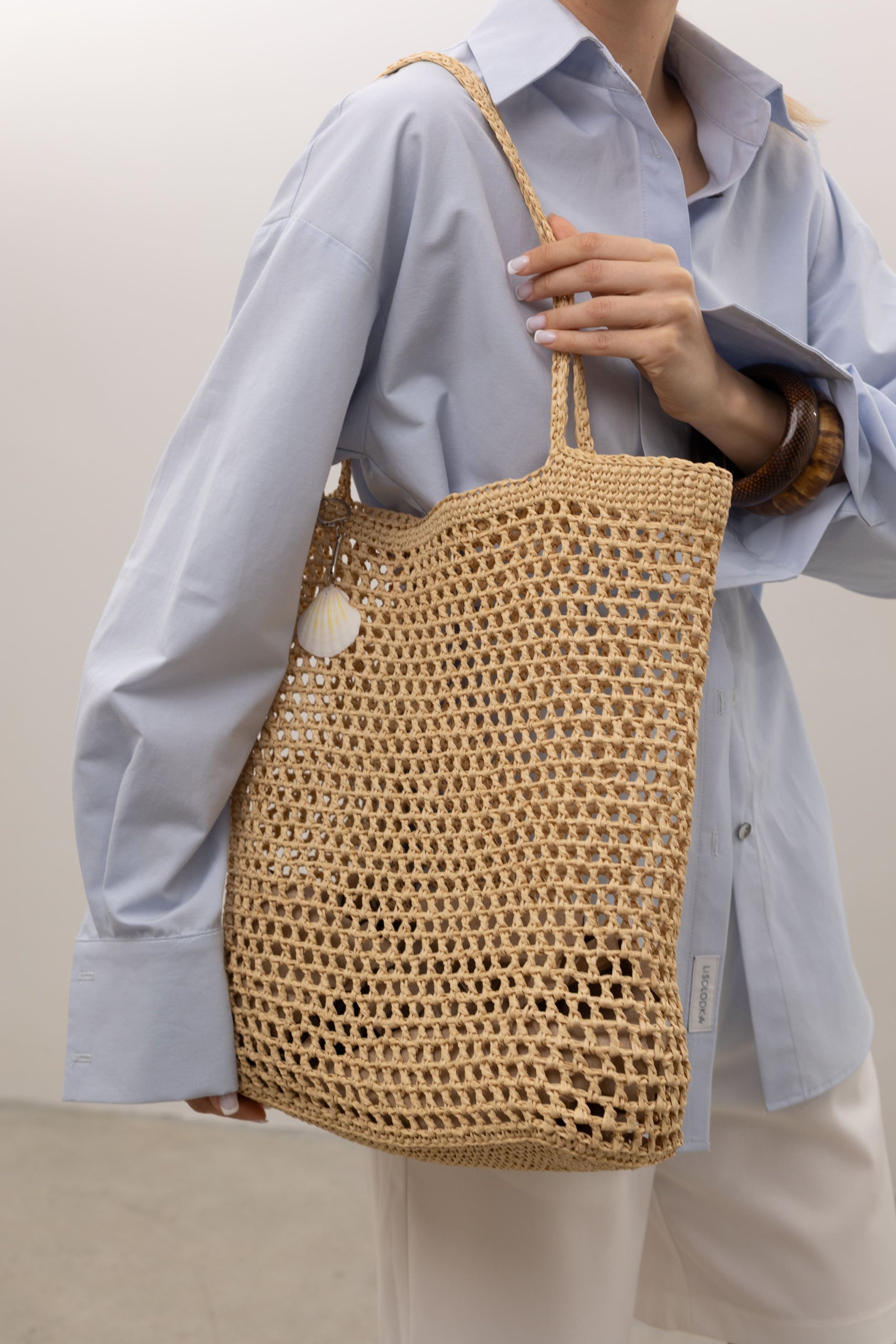 Сумку-шопер плете наша майстриня власноруч в Україні. Завдяки натуральному матеріалу, сумка стійка до щоденного використання та не дряпає одяг.