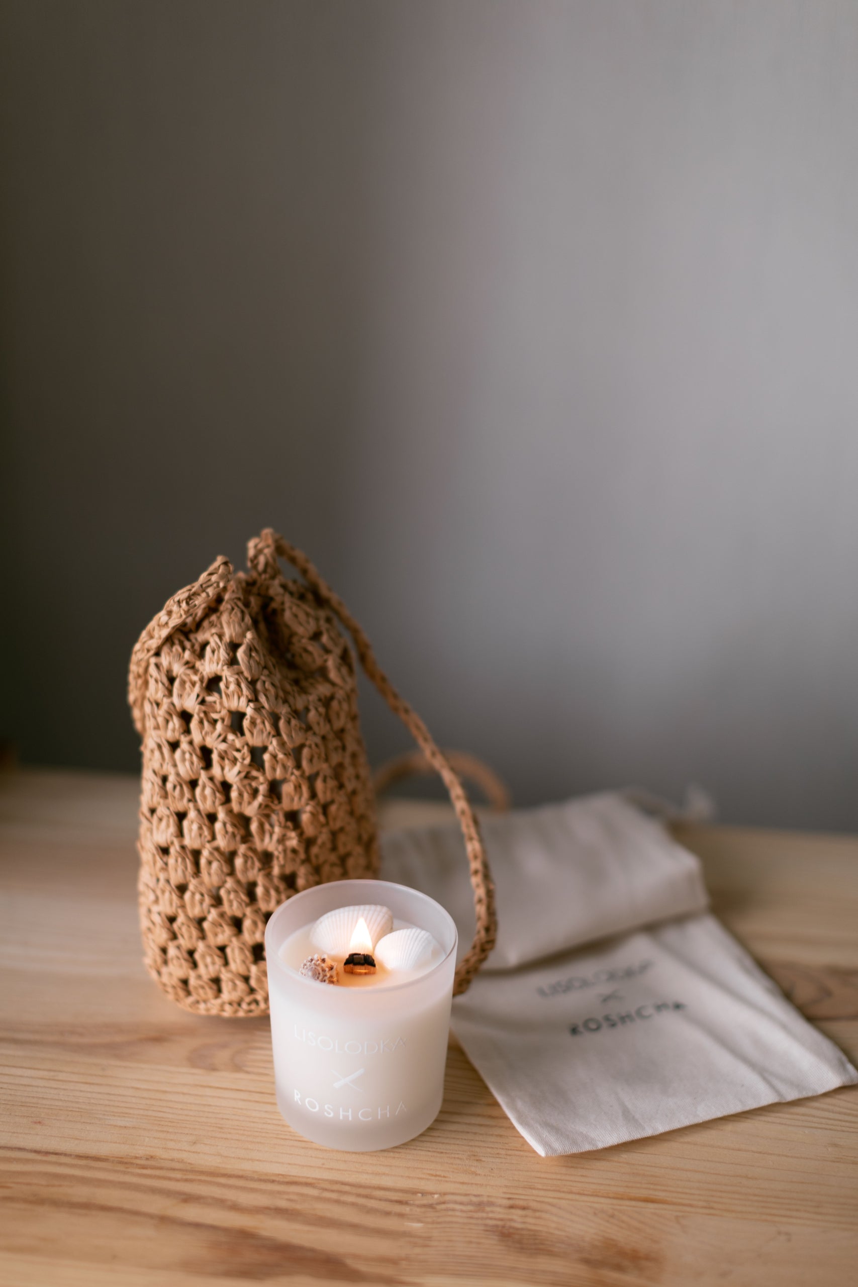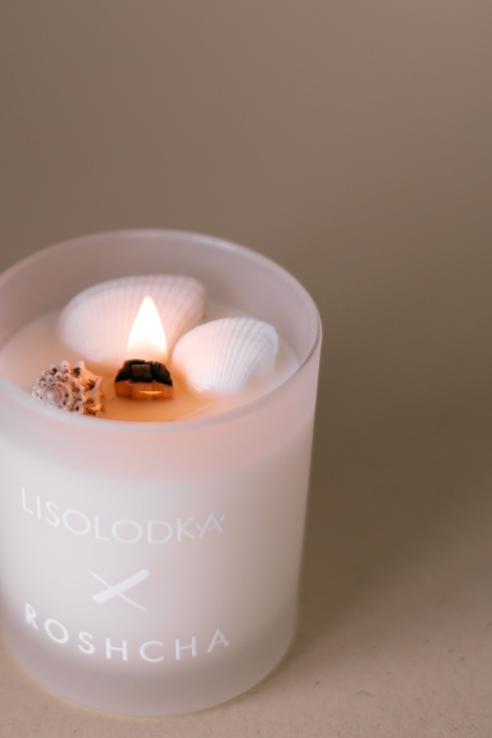 Ароматна свічка з натурального соєвого воску – частина колекція “ПРИБЕРЕЖНИЙ”, створена у колаборації бренду LiSOLODKA та Roshcha.