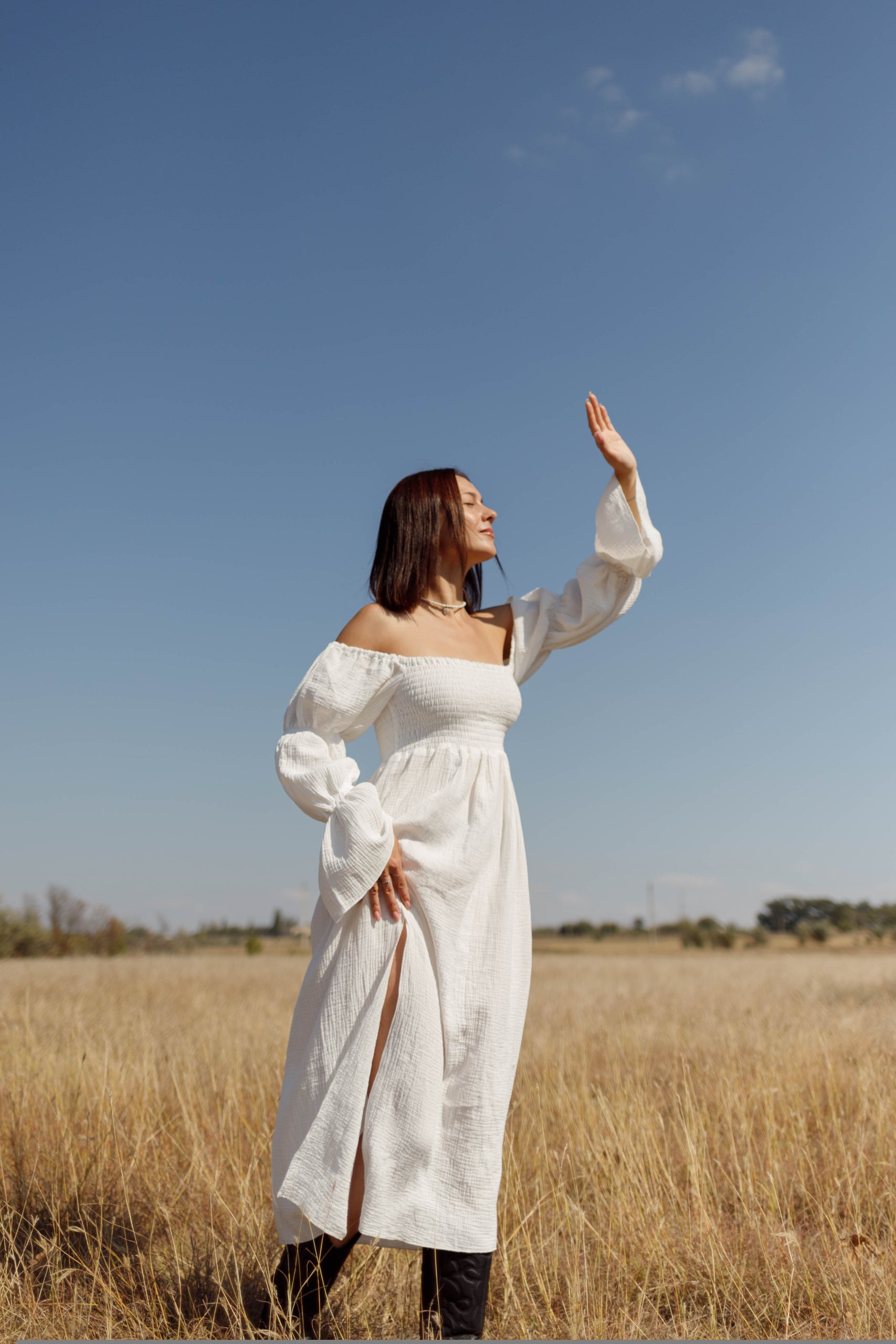 Муслінова сукня у довжині міді з декоративними зав’язками