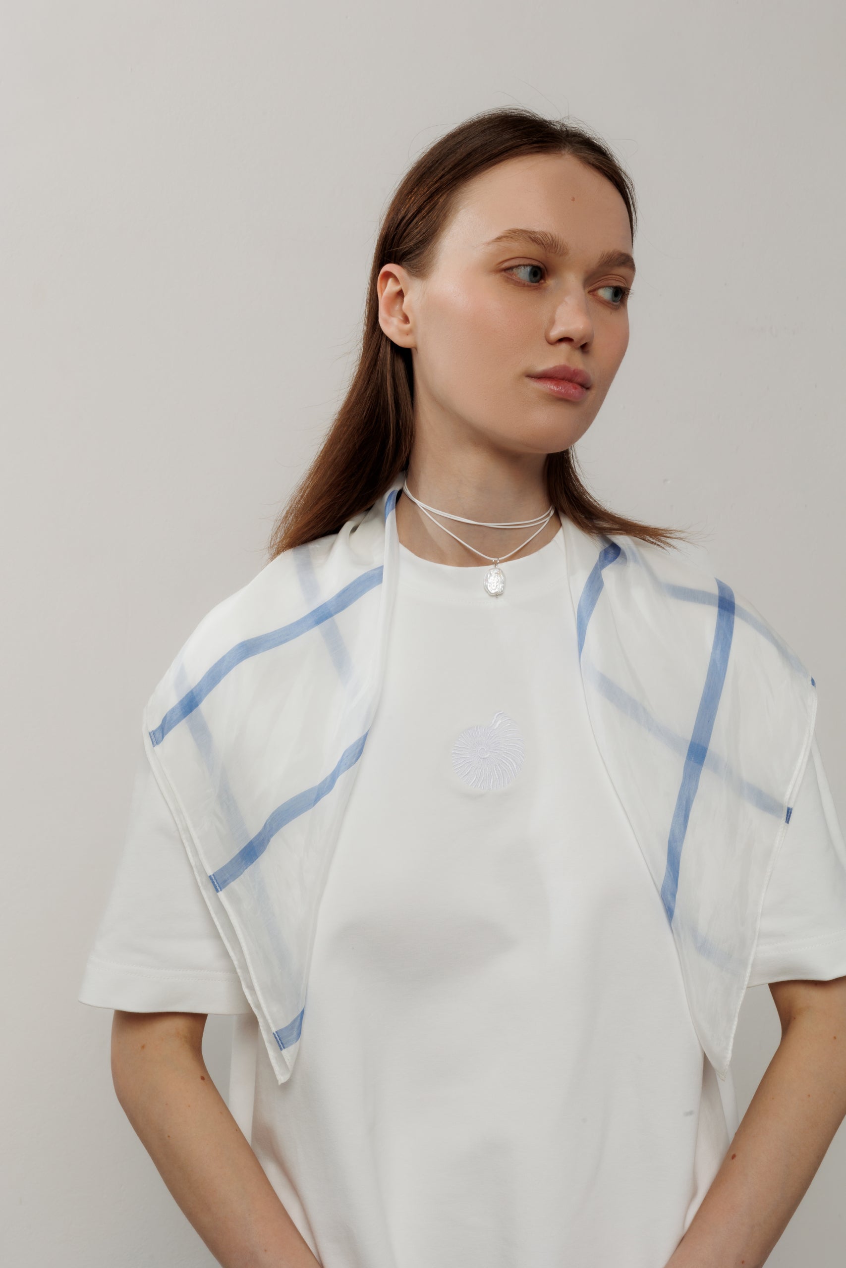 Ацентна хустка з акватичними мотивами, що стає чудовим доповненням літнього образу